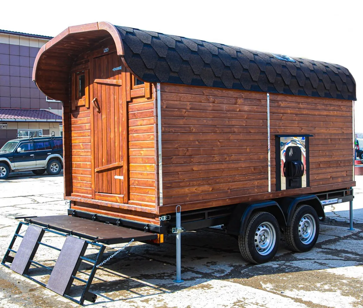 Баня-бочка «Танк» из кедра 5х2,2 метра (вариант 2) Кедровая баня, вылепленная в очертаниях гусеницы танка – это не просто архитектурный каприз, это ода инженерной мысли, сплавленная с любовью к парной традиции. Идея, возникшая, вероятно, в горячем споре между почитателями милитаристской эстетики и апологетами телесного релакса, обрела плоть в ароматном кедре.
